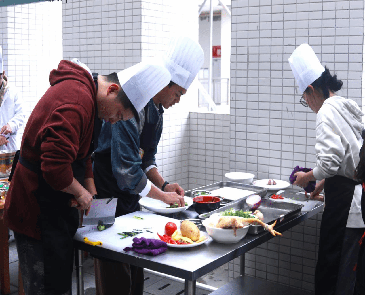 本次大赛以“创意为魂、实践为基”,精心构建“培训+比赛”全流程育人体系。在10月13日至20日的培训阶段,后勤服务集团高级厨师唐承强再次领衔授课,聚焦“菜品创新与开发”主题,围绕 “创意菜品的食材搭配逻辑”“家常食材的风味创新路径”“菜品颜值与口感的平衡技巧”等核心内容展开系统讲解。课程在夯实“食品安全规范”“中式烹饪基础”等必备知识的同时,紧扣“纯创意菜” 赛题要求,增设“味型融合”“摆盘设计”等实用模块,助力选手实现从掌握烹饪技能到具备创新能力的跨越,充分彰显后勤在劳动教育中的专业支撑作用。